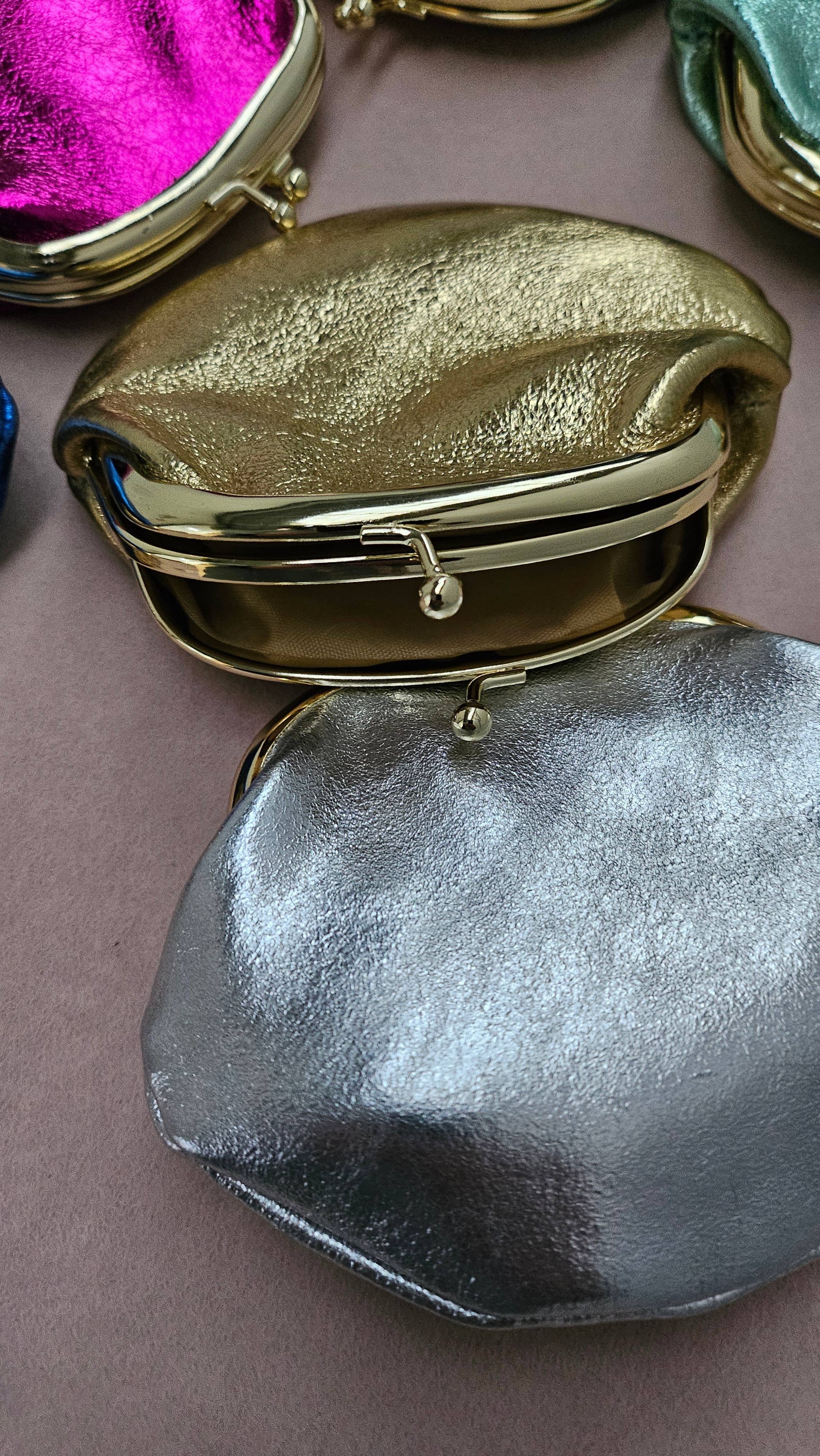 Bourse fermoir cuir rétro: Mauve