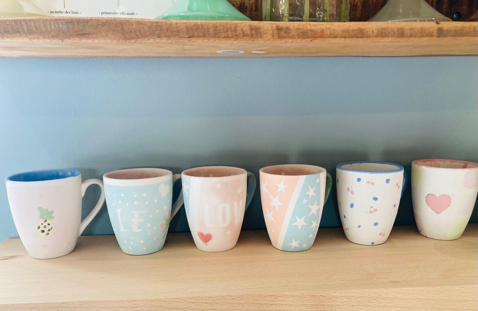 Sur des mugs, des vases, portes-savon, bougeoirs, ou coquetiers…les couleurs se posent comme des confettis de rêve.
