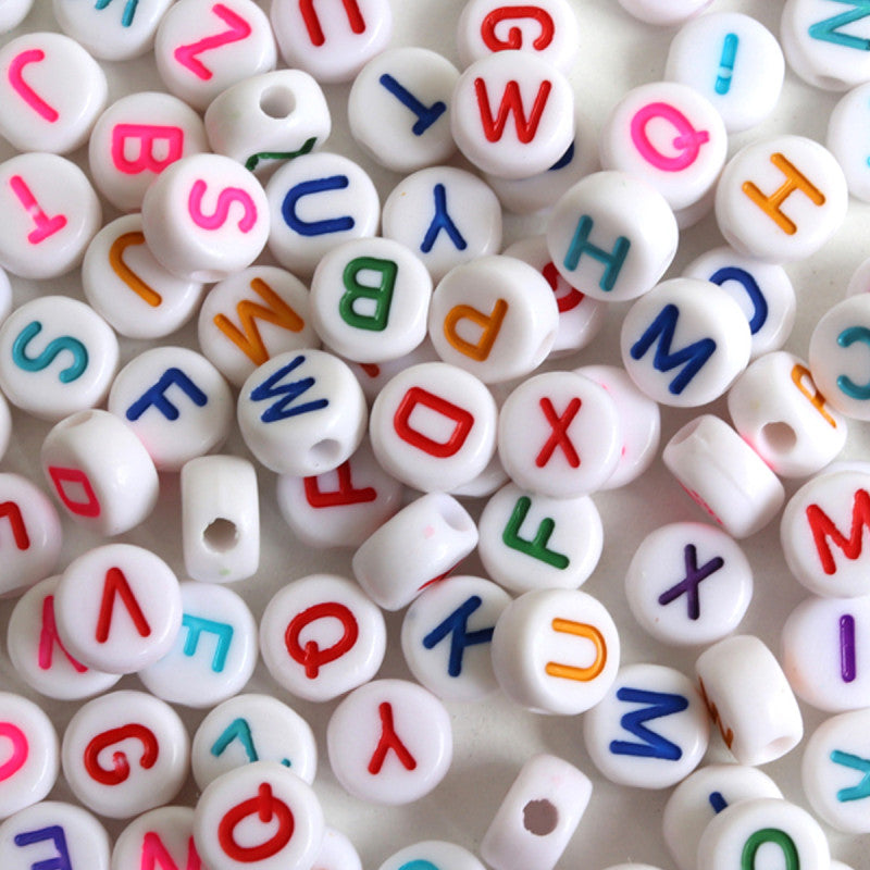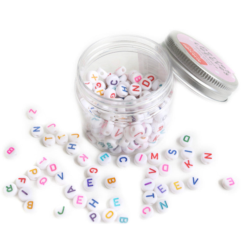 Craquez pour ce mélange de perles lettres à fond blanc, parfait pour se créer des bijoux !