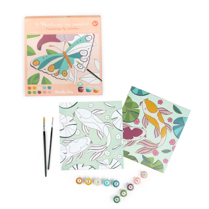 Laisse-toi guider par les numéros dans chaque case qui t'indiquent la couleur de peinture à utiliser et regarde ton image prendre vie à chaque ajout de couleur. Contient 4 images à peindre dessinées pas Cécile Blindermann, 2 pinceaux et 10 pots.