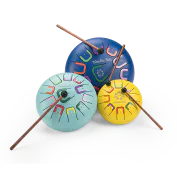 D'un diamètre de 24 cm et comprenant 11 notes, le tambour à languettes initient les enfants à la musique. Avec les doigts, la main ou les baguettes incluses, tout est bon pour danser avec Puce & Pilou. Contient un livret de partitions et un sac en tissu.